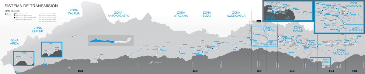 La actividad principal de CGE Transmisión, es la prestación del servicio público de transformación y transporte de electricidad, para lo cual proyecta, construye, opera, mantiene y comercializa un conjunto de subestaciones y líneas de transmisión. Con una infraestructura que abarca desde la Región de Arica y Parinacota hasta la Región de Los Ríos, nuestra empresa cuenta con 3.639 kilómetros de líneas de Transmisión Zonal y xx subestaciones transformadoras que totalizan 8.932 MVA de potencia instalada, cifras que la posicionan como líder en el sector de la Transmisión Zonal del Sistema Eléctrico Nacional. Conforma a lo establecido en la Ley General de Servicios Eléctrico, la expansión del sistema de transmisión zonal se rige por los Planes de Expansión de los sistemas de transmisión que anualmente publica el Ministerio de Energía, dando origen a obras nuevas y obras de ampliación.